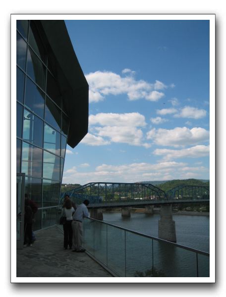 Front of building is mostly glass