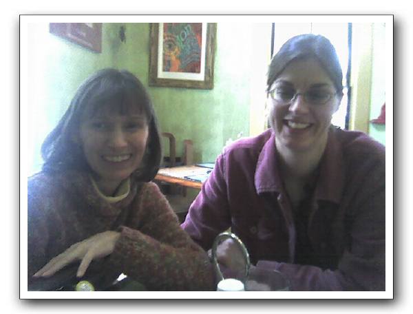 a snapshot with my Treo 650 cameraphone: Lunch with Angie & Priscilla at Aretha Frankensteins