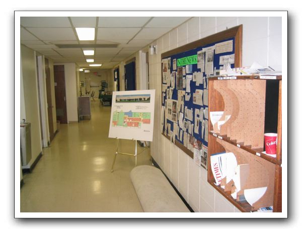 The Main Hall of the station. On the easel are the plans for the New Station (3 times larger than this place). Mailbox at right where I'd send and receive memos. Oh, the memo-ries.