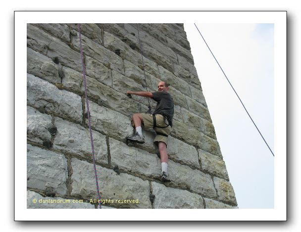 Dan's shot of my progress. My arms & legs gave out before I reached the top, but it was fun!