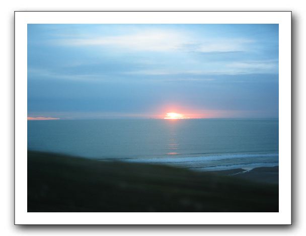Sun sets on the Pacific, as we twirl around steep hairpin curves