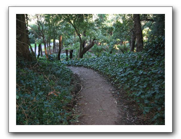 Path curves away, with promise of change.