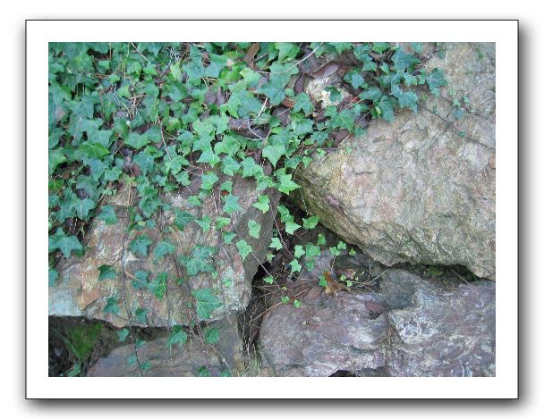 Ivy creeps over boulders.
