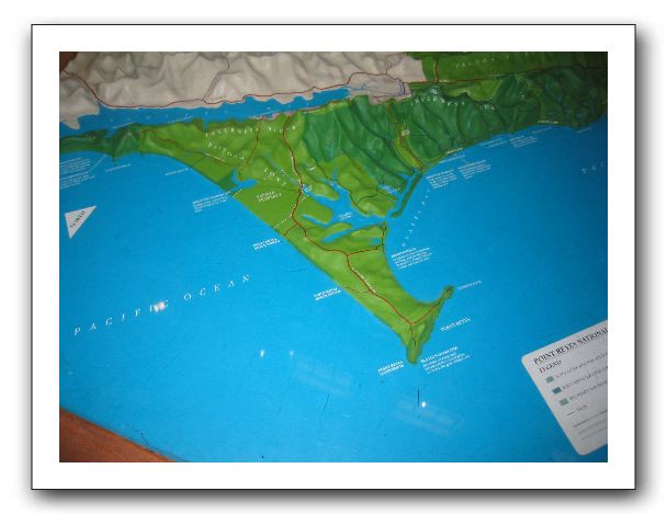 A peek ahead at our upcoming destination - the Point Reyes Lighthouse (the bottom tip)