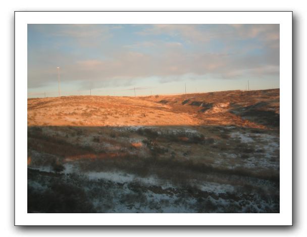 So this is Nebraska. That may be a cell phone tower on left, but I'm in the Lounge car prior to breakfast so it does me no good.