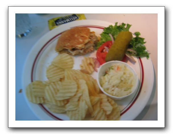 Time for lunch. I almost forgot to snap a meal picture (I'd already half-eaten my grilled chicken sandwich). Tasty! I ate with a young couple - new parents of Antonus - from Berkeley.