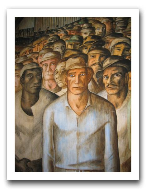 Inside Coit Tower the walls are covered with murals from the 1930s