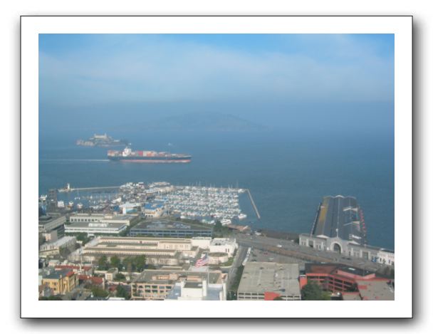 Alcatraz is passed by a container ship
