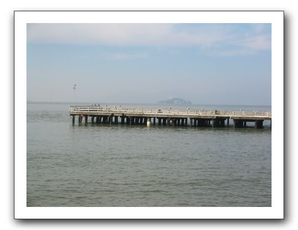 Old pier, with Alcatraz beyond.
