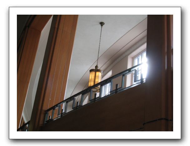 An inner balcony oversees the lobby