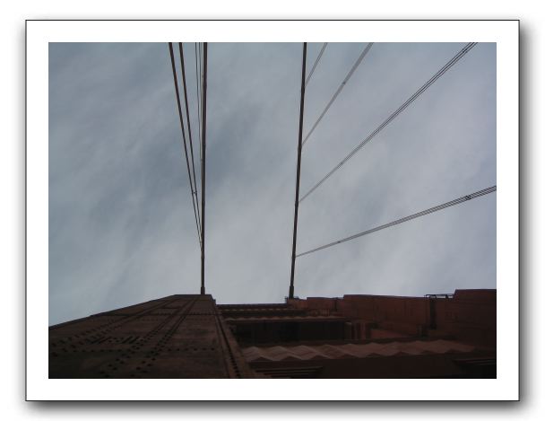 A view looking up one of the tall supports. Or pylons? Hmm.
