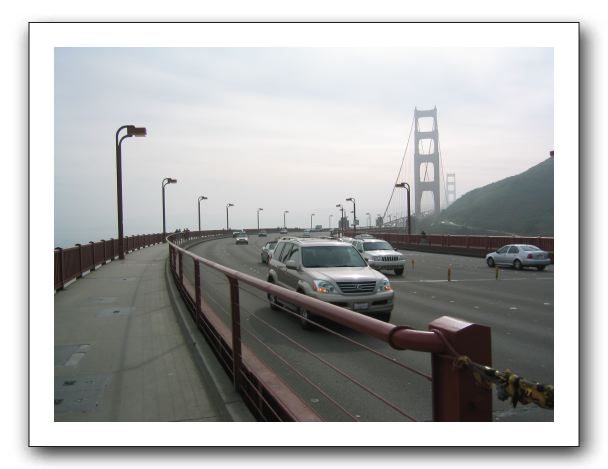 We (King, Gwen, me) park the car on the Marin side of the bridge and start a' walkin'!