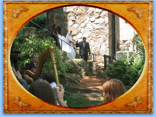 Shannon in her beautiful gown carefully makes her way down the steps