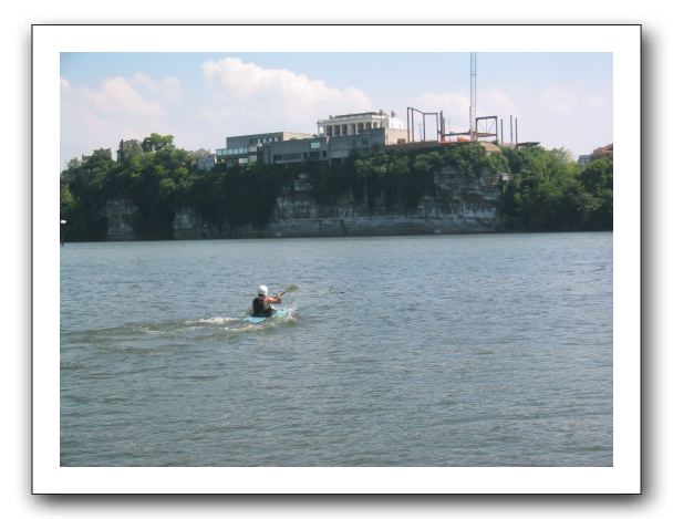 Dan paddles his little boat
